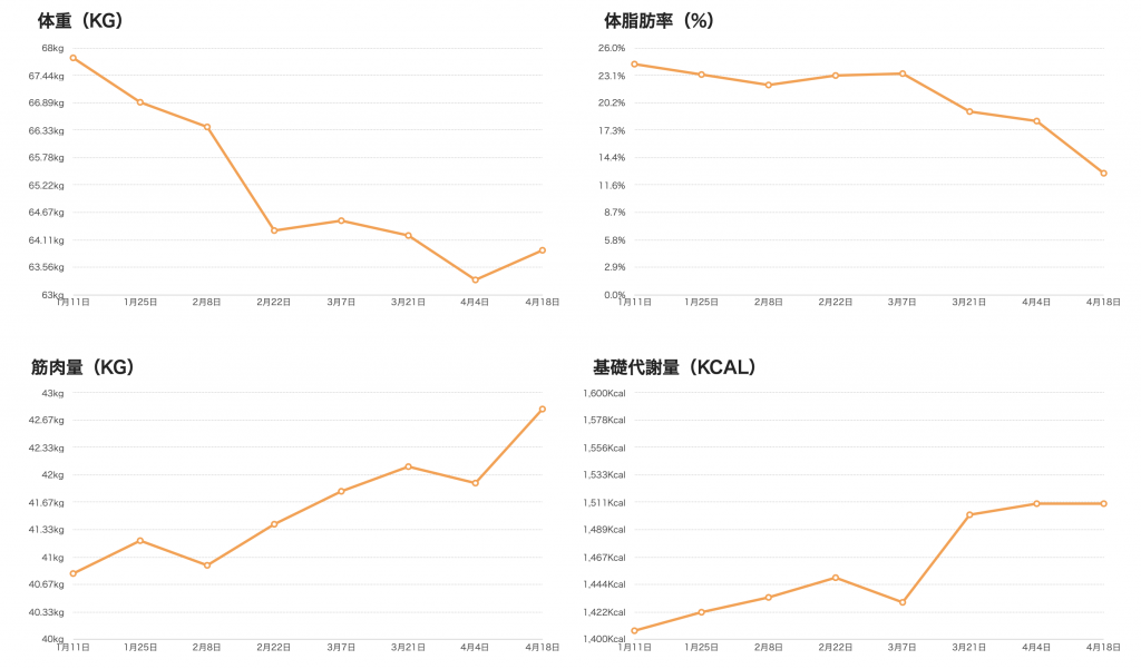 ・体組成の数値の変化。